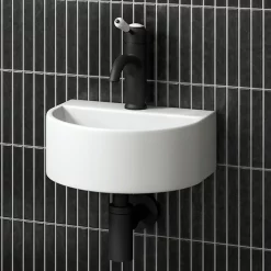 This beautifully designed cloakroom basin is wall hung and features two tap holes, its also available as a single tap hole option and is made from high grade vitreous china.