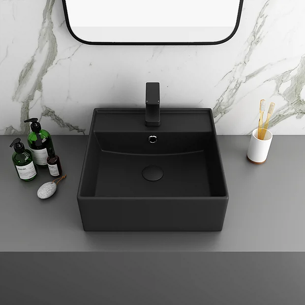 The eye catching luxury Arezzo matt black square basin with one tap hole has a stylish contemporary square shape, perfect for creating a boutique feel in your bathroom. Designed to be wall hung or mounted onto a worktop. Manufactured from high quality vitreous china with a matt black finish. Some small dimensional variation may occur due to manufacturing tolerances. Waste not included.