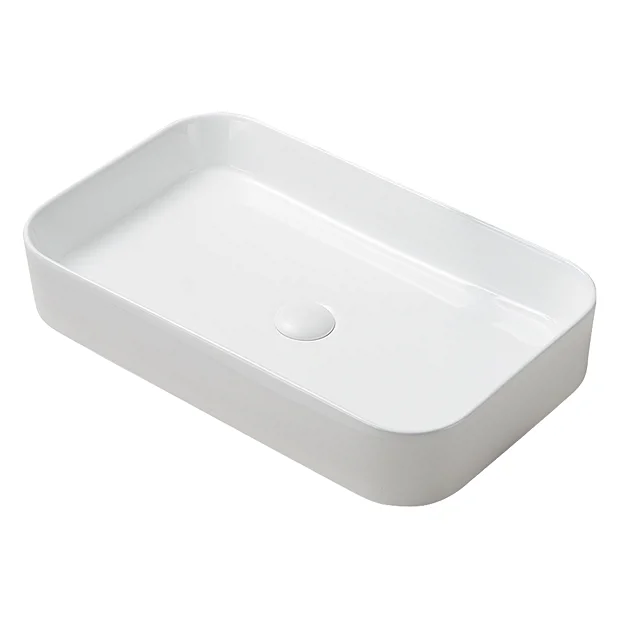 The modern shape of this stylish 600mm wide curved rectangular counter top basin will create a contemporary feel in any bathroom. Made from high quality vitreous china with a high gloss white finish, this basin is perfect for counter tops and is best complemented with a high rise basin mixer or wall mounted tap. Some small dimensional variation may occur due to manufacturing tolerances. Waste not included.