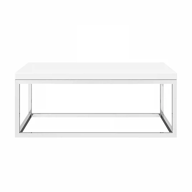 The smart space-saving Arezzo 700mm wide stone resin gloss white wall hung counter top basin shelf features minimalist clean lines. Supplied with a supporting polished chrome steel towel rail frame, perfect for creating a stunning, fashionable and chic bathroom interior. The practical square frame provides a space to hang your towel, keeping it close to hand. Complete the look with one of our stylish counter top basins, chrome basin taps and exposed bottle traps (not included).