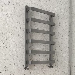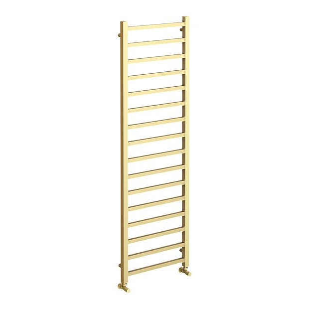 The classic Arezzo square tubed brushed brass heated towel rail is ideal for give your home the latest look in elegant contemporary design. With a straight profile and finished in a eye-catching, brushed brass finish this luxury stylish ladder type towel rail brings a real quality finish to any bathroom. Perfect for keeping your towels toasty and warm as well as creating a focal point in your bathroom. Features 16 square cross rails.