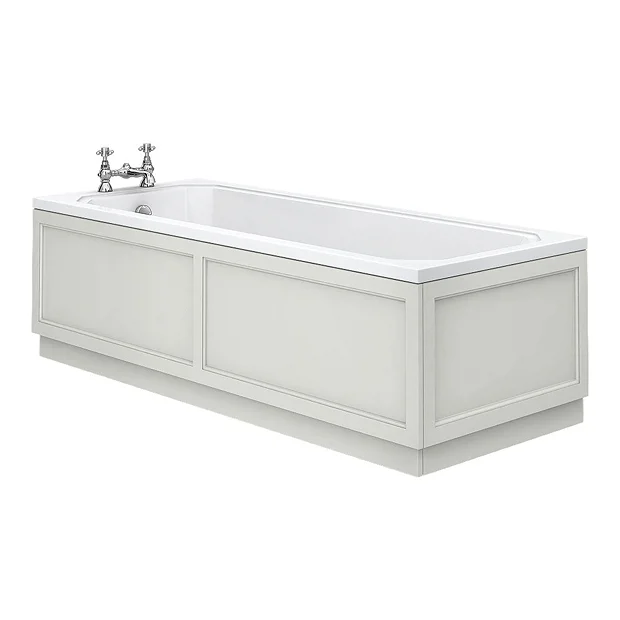 A high-quality traditional bath with satin grey front and end bath panels from the Chatsworth range, ideal for creating a period look in your bathroom.