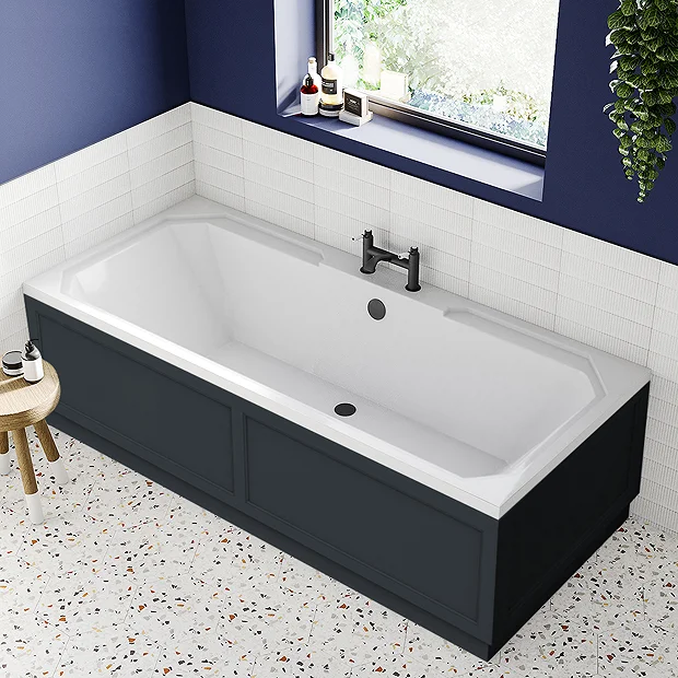 A high-quality traditional large 1800mm bath with satin graphite front and end bath panels from the Chatsworth range, ideal for creating a period look in your bathroom.