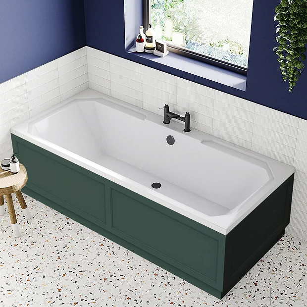A high-quality traditional large 1800mm bath with satin green front and end bath panels from the Chatsworth range, ideal for creating a period look in your bathroom.