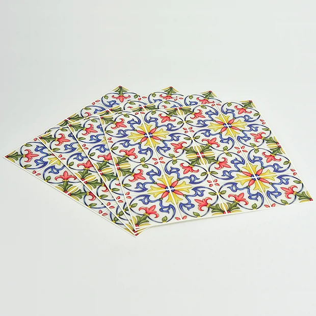 Add color and print to your backsplash with these peel and stick tile panels! The Tuscan floral print has a classic look. The 10 by 10 inch panels are easy to cut and easy to apply. Comes with four panels and measures 20-in by 20-in when assembled.