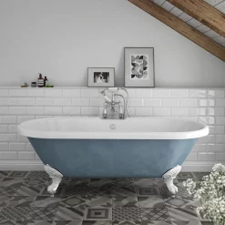 Victorian Plumbing Duke Blue 1695 Double Ended Roll Top Bath W. Ball + Claw Leg Set