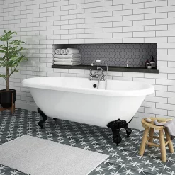 Victorian Plumbing Earl 1750 Double Ended Roll Top Slipper Bath + Matt Black Leg Set
