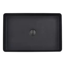The stunning Vos matt black rectangular counter top basin will create a focal point in any bathroom. Made from premium grade 316 stainless steel, the basin comes finished in an eye-catching matt black finish and is supplied with a matching waste.