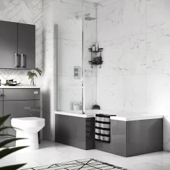 Victorian Plumbing Apollo2 Shower Bath – 1700mm L Shaped With Screen + Gloss Grey Panel
