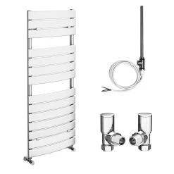 Milan Bathroom Milan 1213 X 493mm Curved Heated Towel Rail (incl. Valves + Electric Heating Kit)