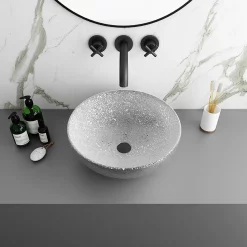 Arezzo Round 410mm Silver Mottled Design Ceramic Counter Top Basin