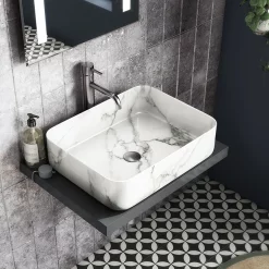 Arezzo 505 X 385mm Curved Rectangular Counter Top Basin – Light Grey Marble Effect