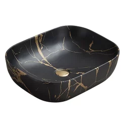 Arezzo 505 X 404mm Rectangular Counter Top Basin – Matt Black & Gold Marble Effect