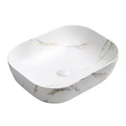 Arezzo 500 X 390mm Curved Rectangular Counter Top Basin – Gloss White Marble Effect
