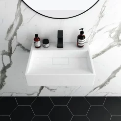 Arezzo 505 X 405mm Curved Rectangular Counter Top Basin – Matt White Marble Effect