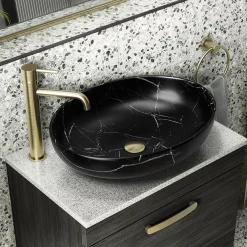 Arezzo 700 Matt Black Stone Resin Worktop With Chrome Wall Mounted Frame