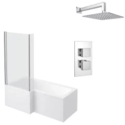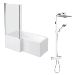 Milan Bathroom Milan Shower Bath + Exposed Shower Pack (1700 L Shaped With Screen + Panel)