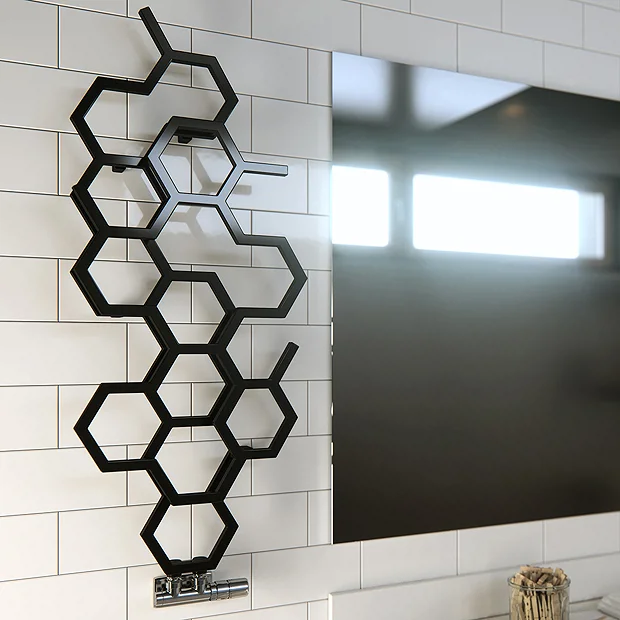 Terma Hex Matt Black Designer Radiator H1220 x W486mm