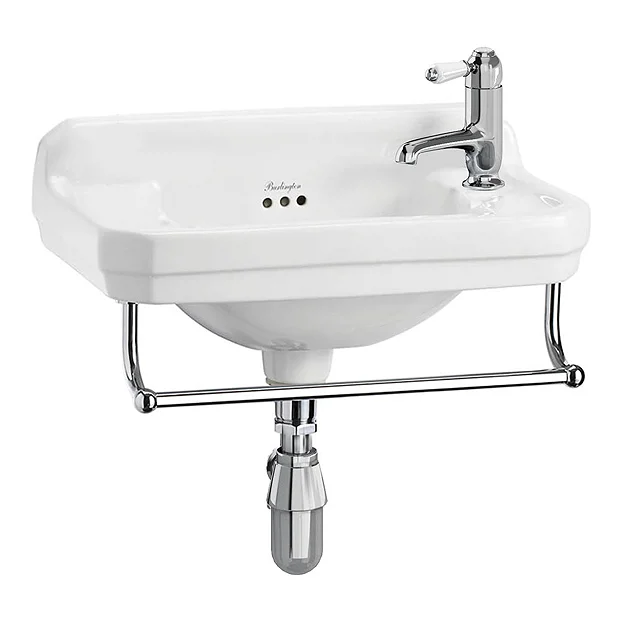 Burlington 51cm Cloakroom Basin with Towel Rail – 1 Tap Hole