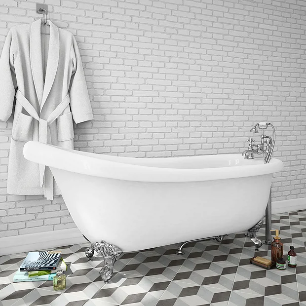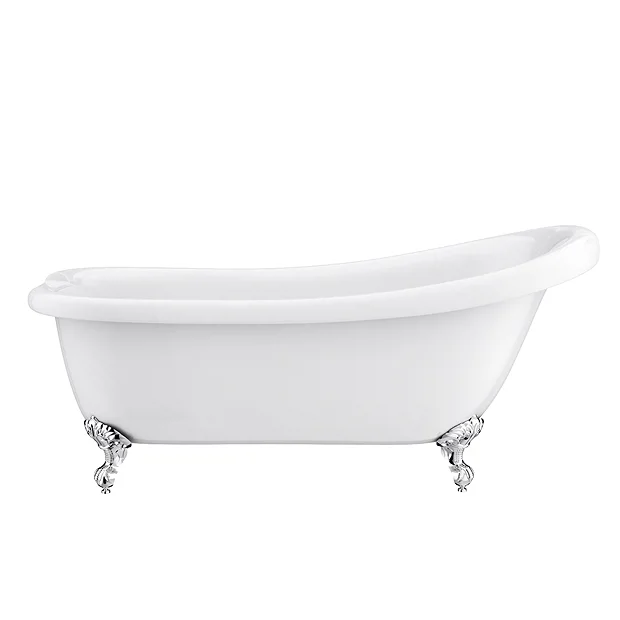 This elegant slipper roll top bath is the perfect centre piece for a traditional bathroom. The bath is mounted upon traditional chrome feet to complete a breathtaking appearance. Made with double skinned acrylic with a superb surface finish.