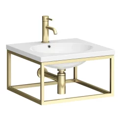 Arezzo 500 Wall Hung Basin With Brushed Brass Towel Rail Frame