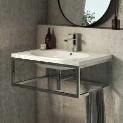 Arezzo 700 Wall Hung Basin With Brushed Brass Towel Rail Frame